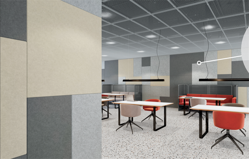 Los paneles acústicos FeltWorks® combinan alto rendimiento acústico con una estética limpia y contemporánea, ideales para crear espacios más confortables y visualmente equilibrados.